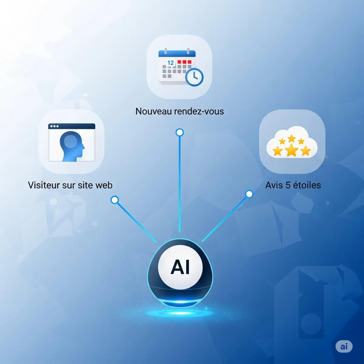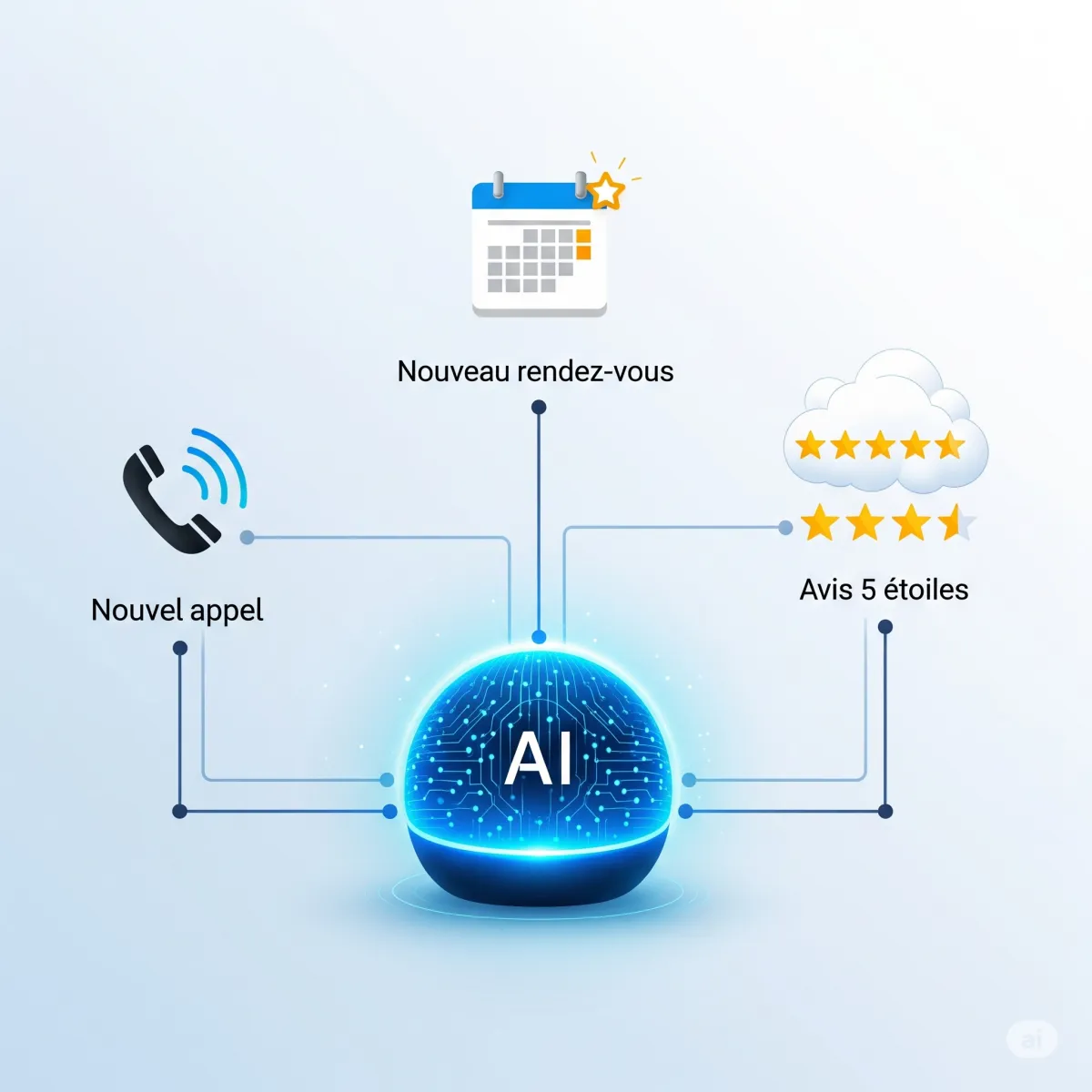 Qualifie instantanément les prospects, prend des rendez-vous et double vos avis 5 étoiles Google, le tout en pilotage automatique.